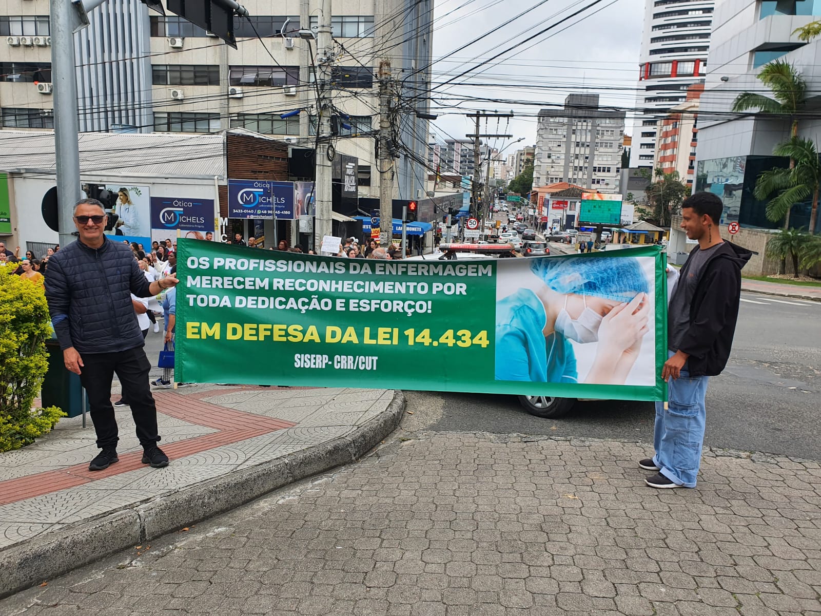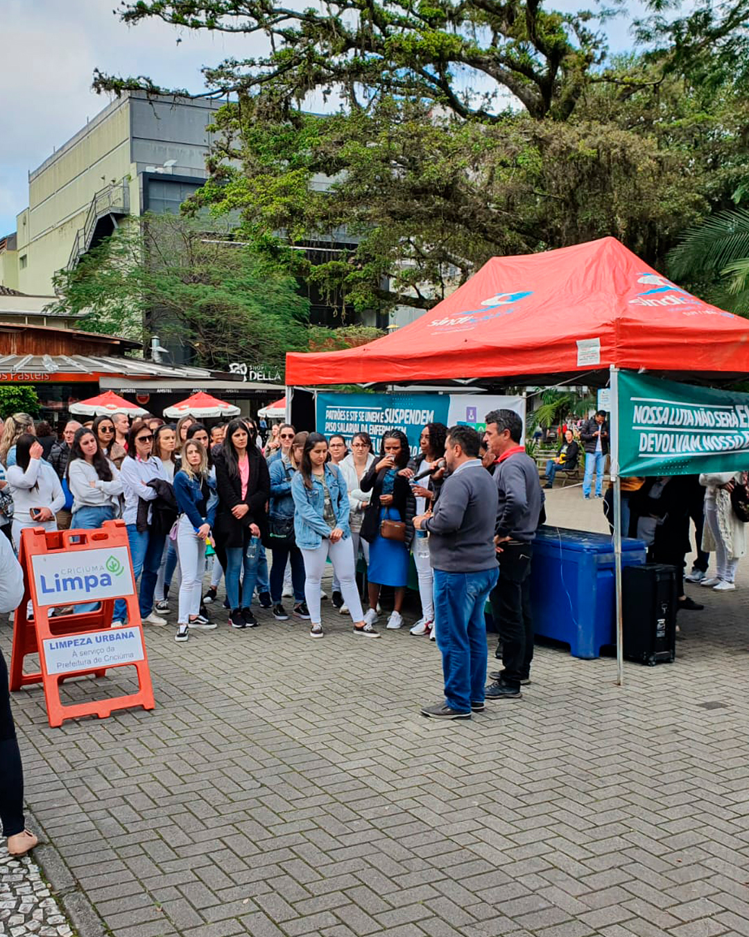 Os profissionais da enfermagem se reuniram na manhã de hoje, dia 21 de setembro, na praça Nereu Ramos no centro de Criciúma, com o objetivo de demonstrar a indignação diante da liminar que suspendeu temporariamente o piso da categoria.